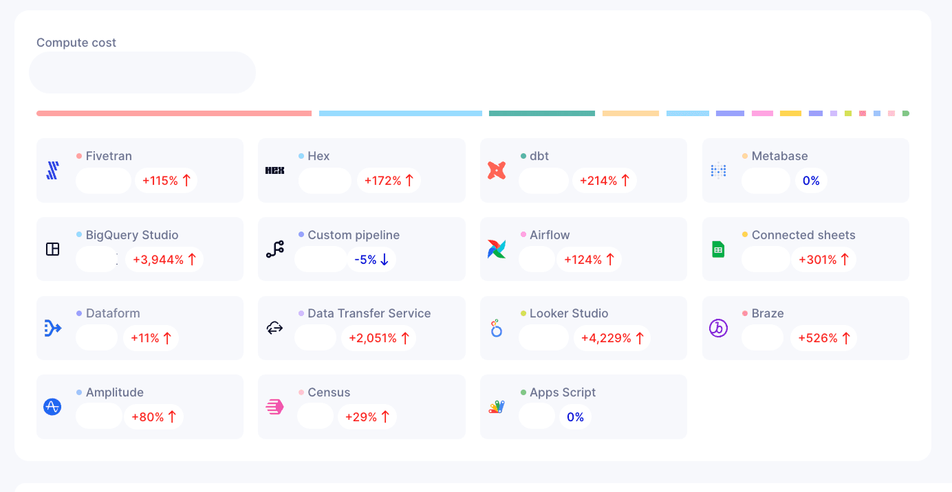 A recurring pain point for the team was the true cost of ownership of tools in the stack. For example, Fivetran—already known as a premium-priced solution—was also responsible for roughly 30% of VEED’s monthly BigQuery costs.