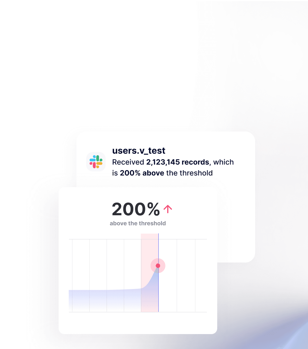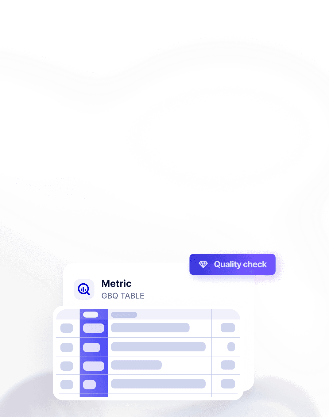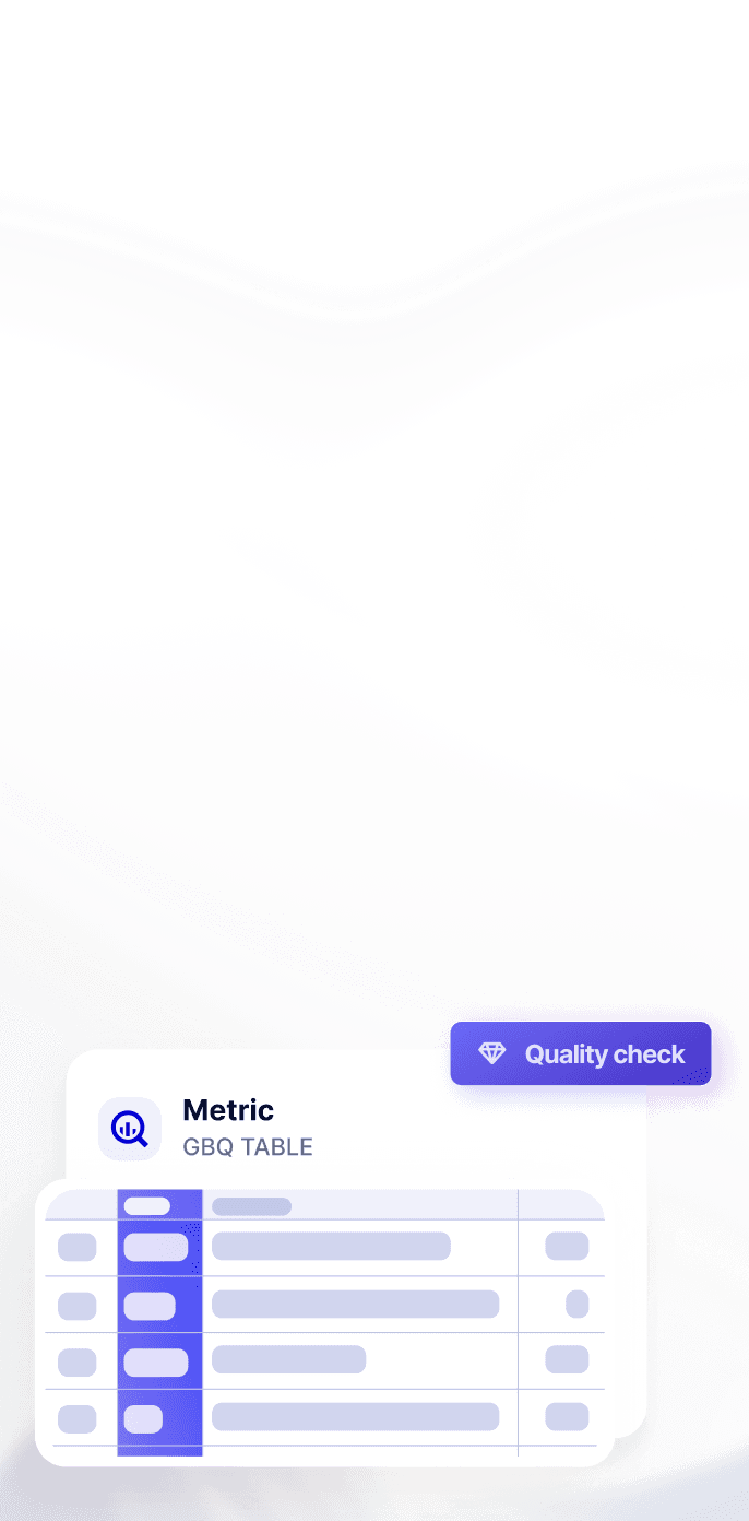 No-code or custom data quality checks detect when metrics are not passing thresholds. Easy plug-and-play for any table or view in Google BigQuery.